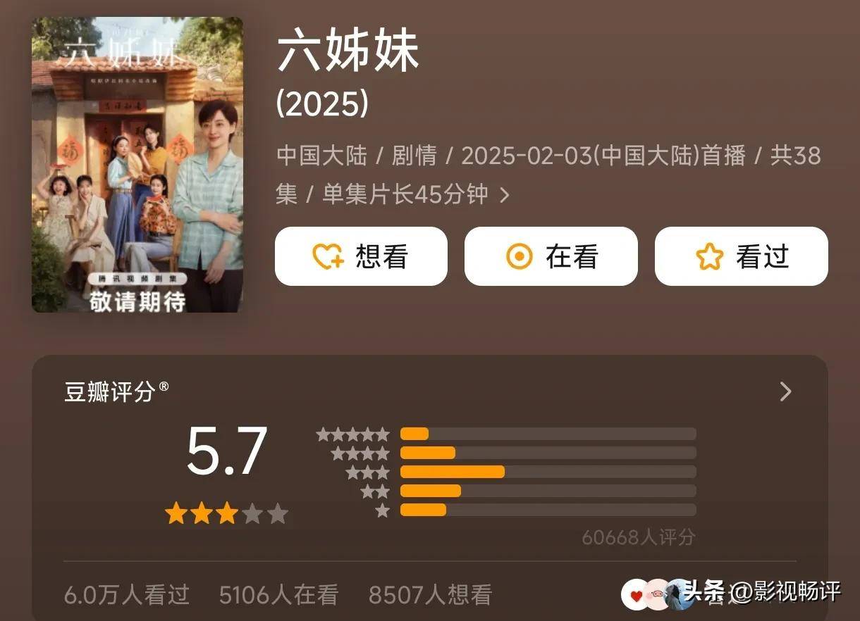 在央视大剧中,剧集《六姊妹》再次迎来了重播。该剧聚焦于一个暖热的年代故事,叙述了家庭成员之间的复杂关系,尤其是插嗫心软的父亲、偏心的母亲,以及各具脾气的伯仲姐妹们。这种深入东谈主心的家庭剧受到了不雅众的爱重,重播后,《六姊妹》在央视八套的收视率高达0.70,尽管梅婷强行“扮嫩”的发扬让不雅众有些不适,但剧集的质地仍然受到了不雅众的招供。